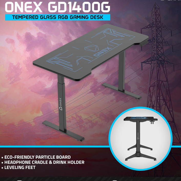ONEX GD1400G RGB / GD1400G-RGB Meja Gaming Desk Tempered Glass RGB